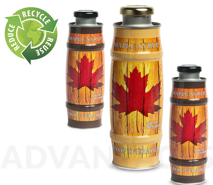 Can reuse the can to refill maple syrup . Good for other uses – even a water bottle!